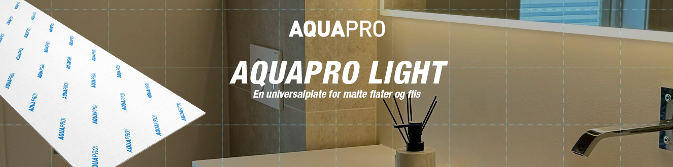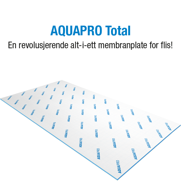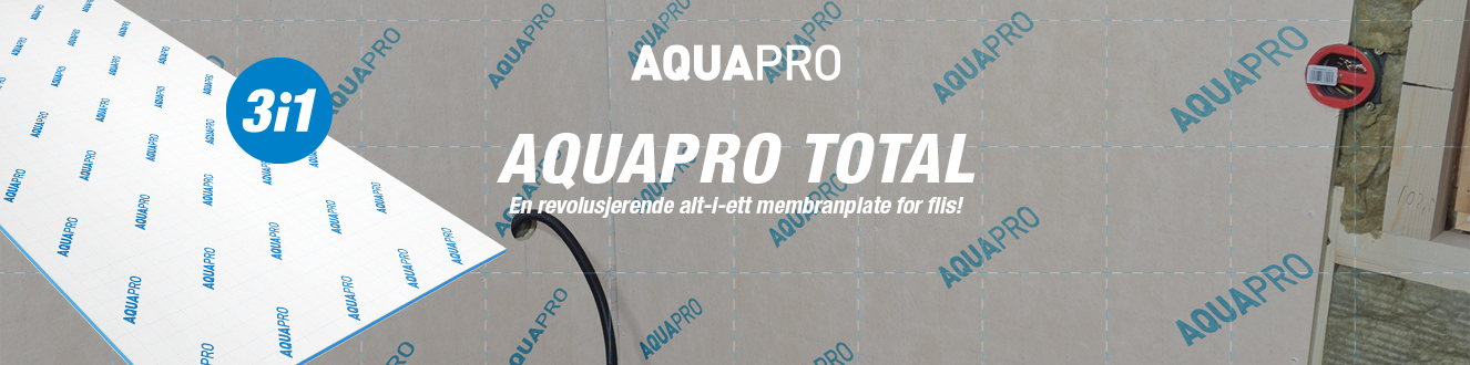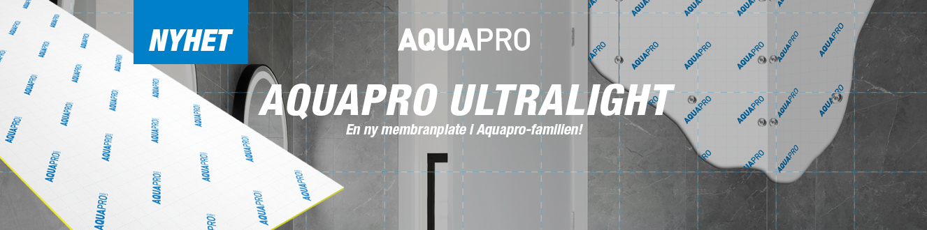 Først lanserte vi membranplaten AQUAPRO Light – markedets eneste SINTEF-godkjente membranplate for både fliser og slett vegg med maling! Den var et resultat av et samarbeid med Jotun for å etterkomme den stigende etterspørselen etter å kunne ha malte flater på badet, også i dusjen – og helt uten strie! Nylig har vi lansert en superlett plate for flis; Aquapro Ultralight, og sist; Aquapro TOTAL. En revolusjonerende alt-i-ett-plate med innebygd skruefeste!